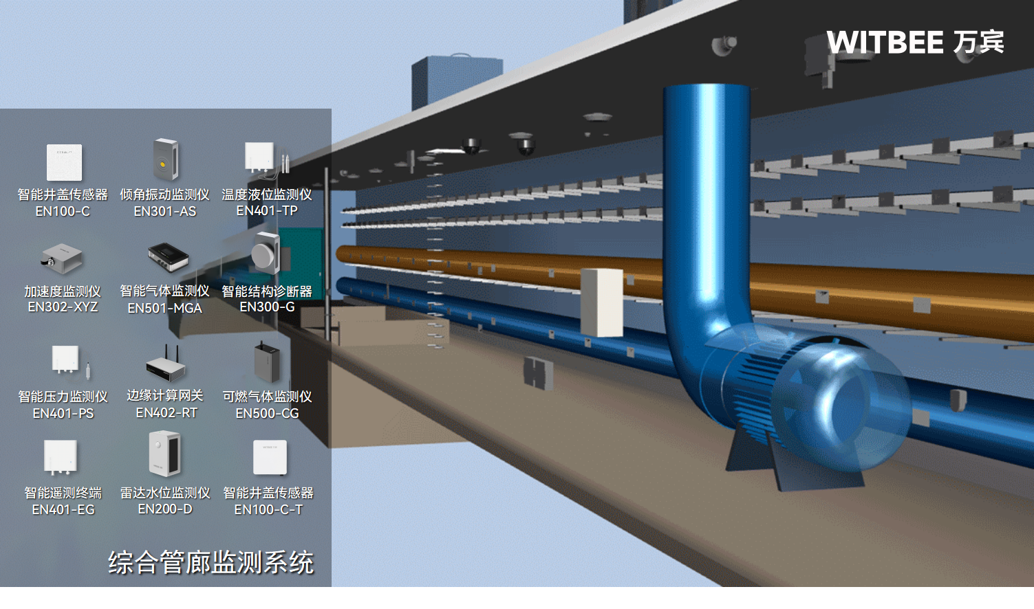 城市地下管网关键,智慧管廊监测用WITBEE®科技,实时监测数据共享,精准管控决策支持,预测维护提安全,双管齐下保运行。
