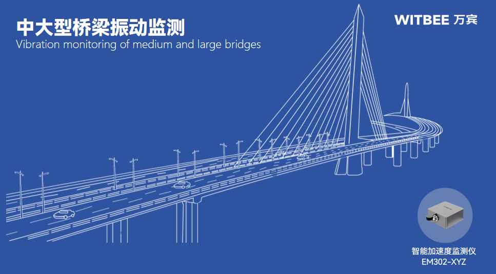 中大型桥梁振动监测是非常必要的,WITBEE®万宾科技®智能加速度监测仪EN302-XYZ精准捕捉加速度变化,及时发现潜在问题,保障桥梁安全运营。