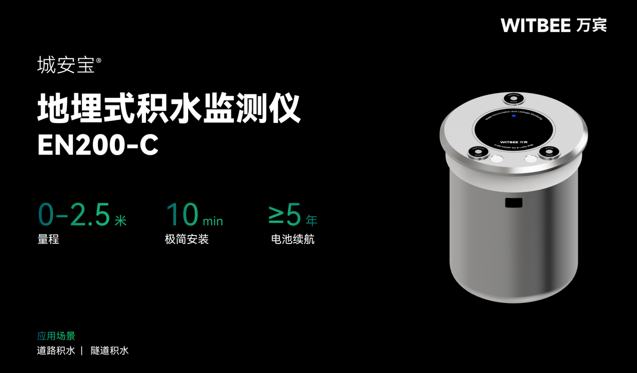 对这些易涝点进行详细调查和评估并采取相应的排水改造、防洪措施和应急预案是一种应对措施,但是无法完全避免内涝的出现。而WITBEE®万宾科技®地埋式积水监测仪EN200-C通过实时在线监测,可以及时预警积水过高的情况,实现更高水平的城市易涝点监管。