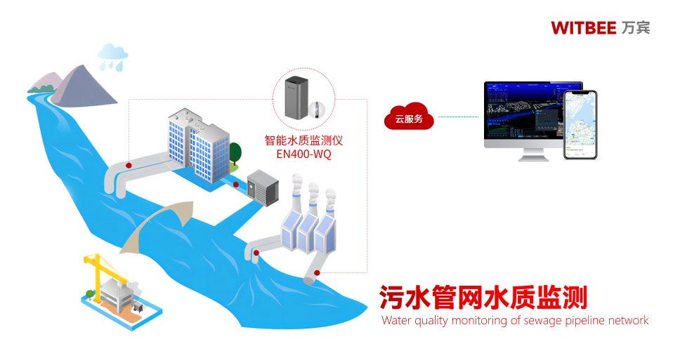 由于管网系统的复杂性和广泛性,实施有效的监测措施面临着诸多挑战,包括数据的实时监测、准确采集和传输等。对于以上诸多技术和管理上的难题,WITBEE®万宾科技®智能水质监测仪EN400-WQ给出了十分合理的监测解决方案。