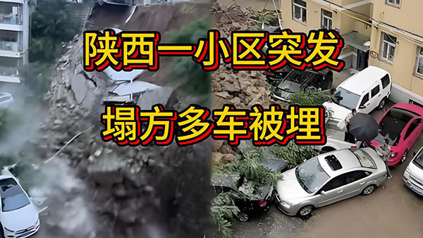 10月12日,陕西延安一小区突发塌方,目击者称多辆车被掩埋,部分车辆受损。小区物业和社区已介入处置,暂无人员伤。现场监控显示,塌方处位于一处石坡,最外层是由砖块垒起的护坡墙,但在大量塌方的泥土前,护坡墙未能支撑住塌方。