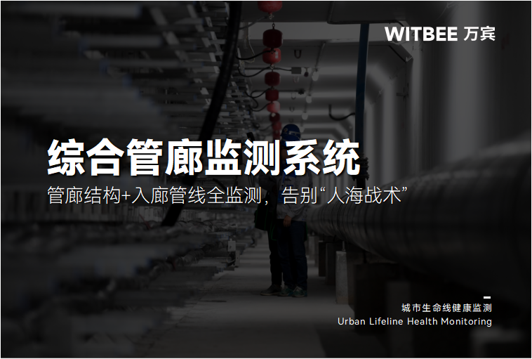 综合管廊的规模化建设则扭转了这一局面,它将多种市政管线收纳至一个共用的地下舱室之内。在这一现实背景下,WITBEE®万宾科技®综合管廊监测系统实现了对管廊结构、入廊管线的全方位监测,助力城市地下实现智慧管控。