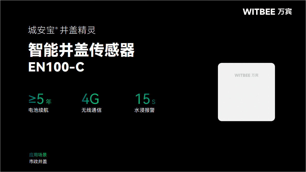 但是依靠WITBEE®万宾科技®智能井盖传感器EN100-C,这一困境将迎来转机。它可以安装在井盖的背面,不影响井盖的外观,也不干扰其使用。最核心的在于,智能井盖传感器具备对井盖状态的实时感知能力。当井盖发生倾斜、出现翻转或破损、被移动等现象时,传感器可以立即识别并向指挥中心发送报警信号。这时无需等待人工巡检、无需依靠行人上报,却实实在在提升了异动井盖的识别和处置效率。