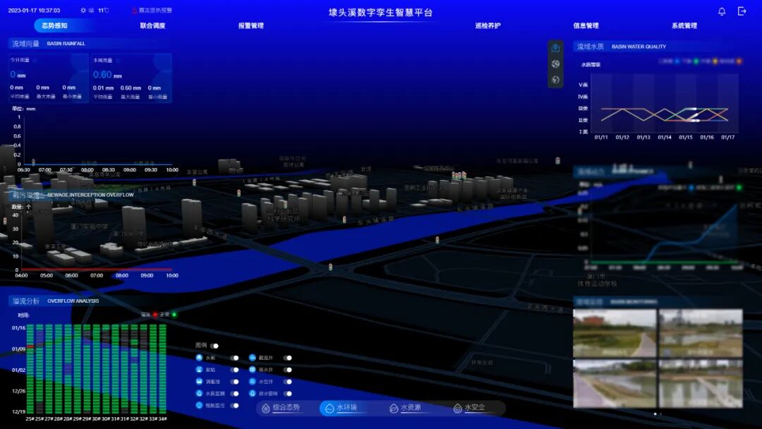“埭头溪数字孪生流域智慧平台以全流域、全链条各个关键节点布设的数百台智能监测仪器,通过智慧平台的数据融合和智能分析,构建起水环境综合治理‘一张图’运行调度,有效提升流域水环境监管、水资源调度和水安全保障能力。”据同安区农业农村局工作人员介绍,同安区探索形成“全收集、全处理、全清淤、全补水、全修复”的“五全”治理专业化模式,使水质稳定达到V类水标准,水清岸绿、鱼鸟成群,昔日“烂河滩”今变“生态园”,埭头溪成为厦门河湖治理的典范。