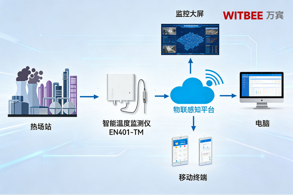 WITBEE®万宾科技®智能温度监测仪EN401-TM实时采集供暖系统温度数据,帮助热力公司精准调节供热,提升供暖效率与用户满意度。