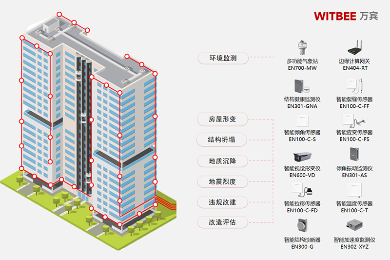 人们习惯在生病时去医院,但建筑不会迈开步子走向检测中心,它只能默默等待管理者的关注。而WITBEE®万宾科技®建筑结构健康监测系统可以帮助老旧建筑,把自身状态“告知”给监管方,让它们在生病状态下也不慌张、不担忧。